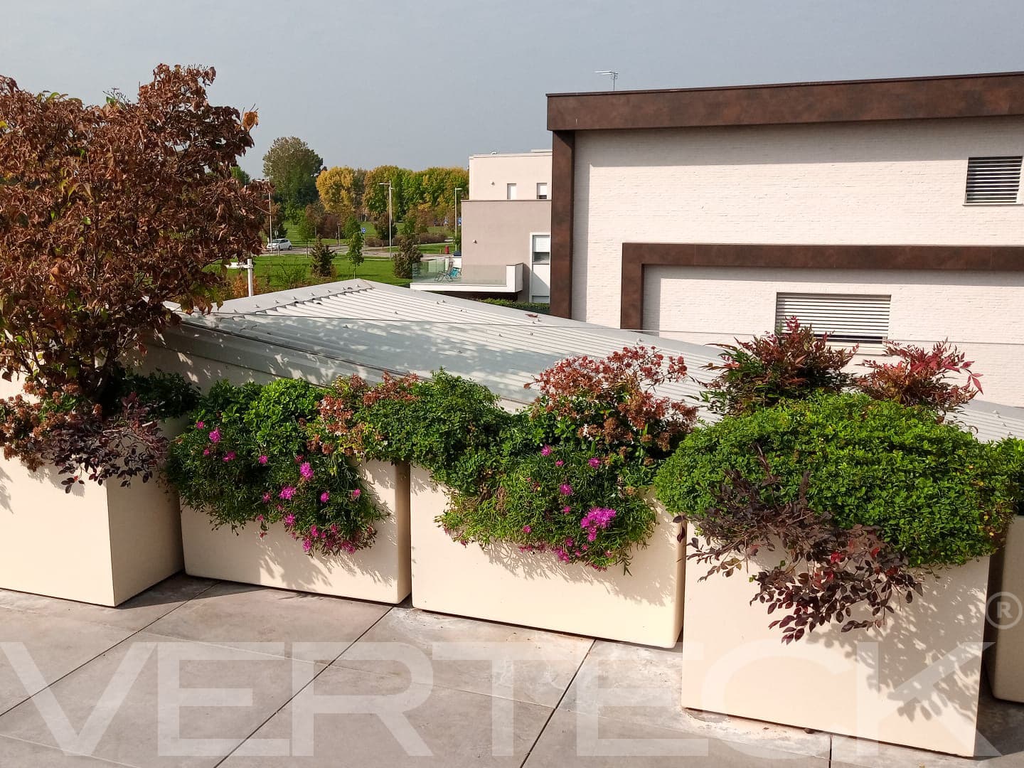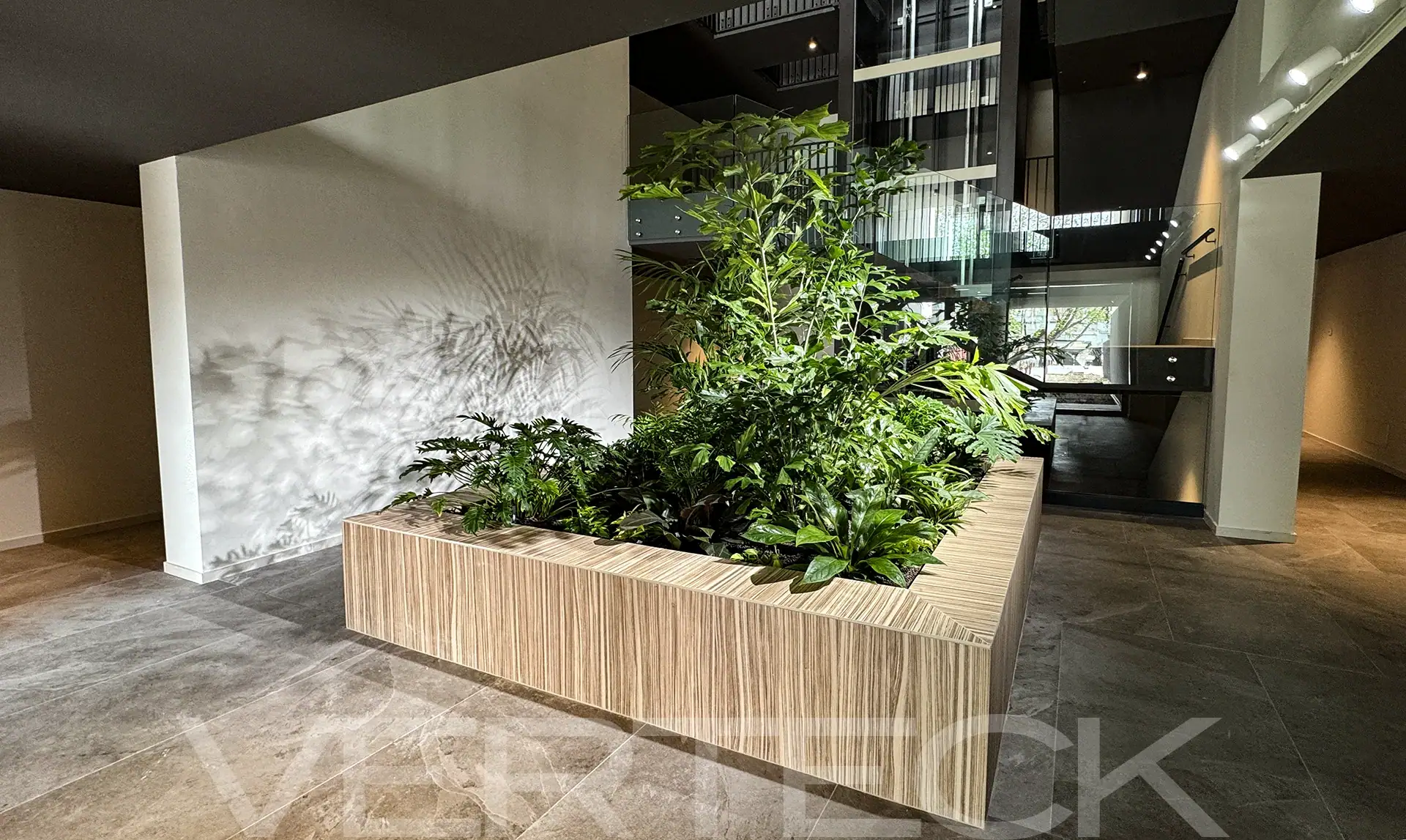 Verteck trasforma l’ingresso di rappresentanza con una fioriera monumentale in idrocoltura. Una grande fioriera da 3×3 metri impreziosisce l’accesso di un prestigioso stabile moderno, con un design elegante e un effetto tropicale che esalta l’architettura contemporanea. Guarda le foto.